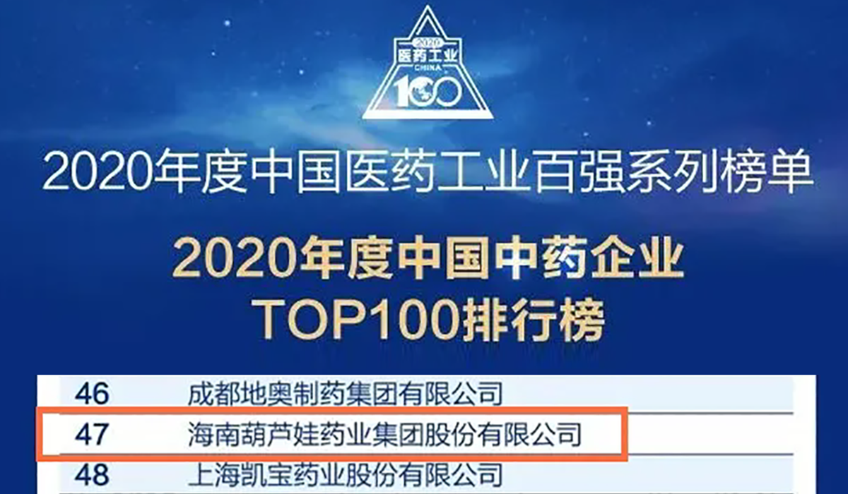 集团荣登“中国中药企业TOP100排行榜”第47位